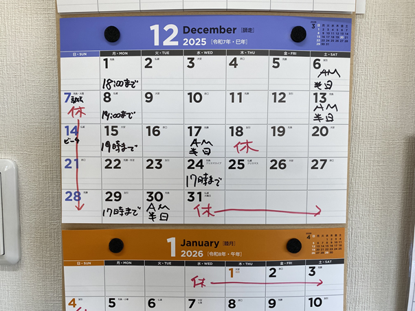※年内は運動関係で忙しく変動が多くなります。(10月~12月)